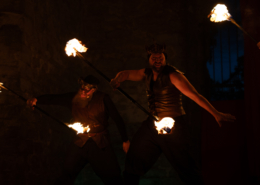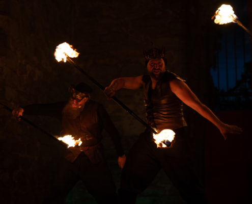 I föreställningen ASTRA får vi uppleva hur himlavalvet kom att bli till och höra historierna om de stjärnbilder som skaparna placerat däruppå. Eldsagor är en elddramatisk föreställning för alla åldrar* och innehåller sagor ur Faes fantastiska värld. En fantasy-setting inspirerad av mytologi och gudasagor. (*Barn under 10 år rekommenderas ha någon att hålla i handen).
