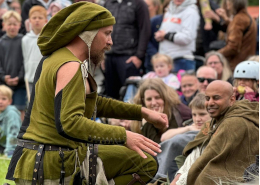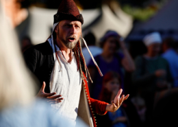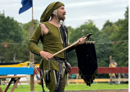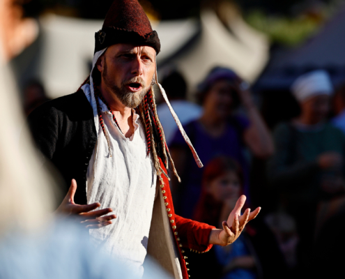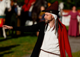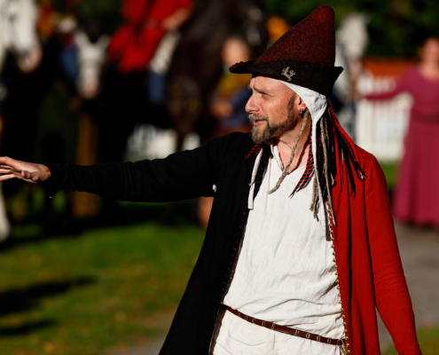Med glimten i ögat, snabb replik och en passion för historiens dolda skatter kliver Arkadia upp på Gästabudets scen – och förvandlar medeltida magi till modern underhållning. Han är en veteran på Söderköpings Gästabud, men kommer aldrig med samma föreställning två gånger. Varje år är fylld av nya trick, nya skämt – och samma smittande energi.